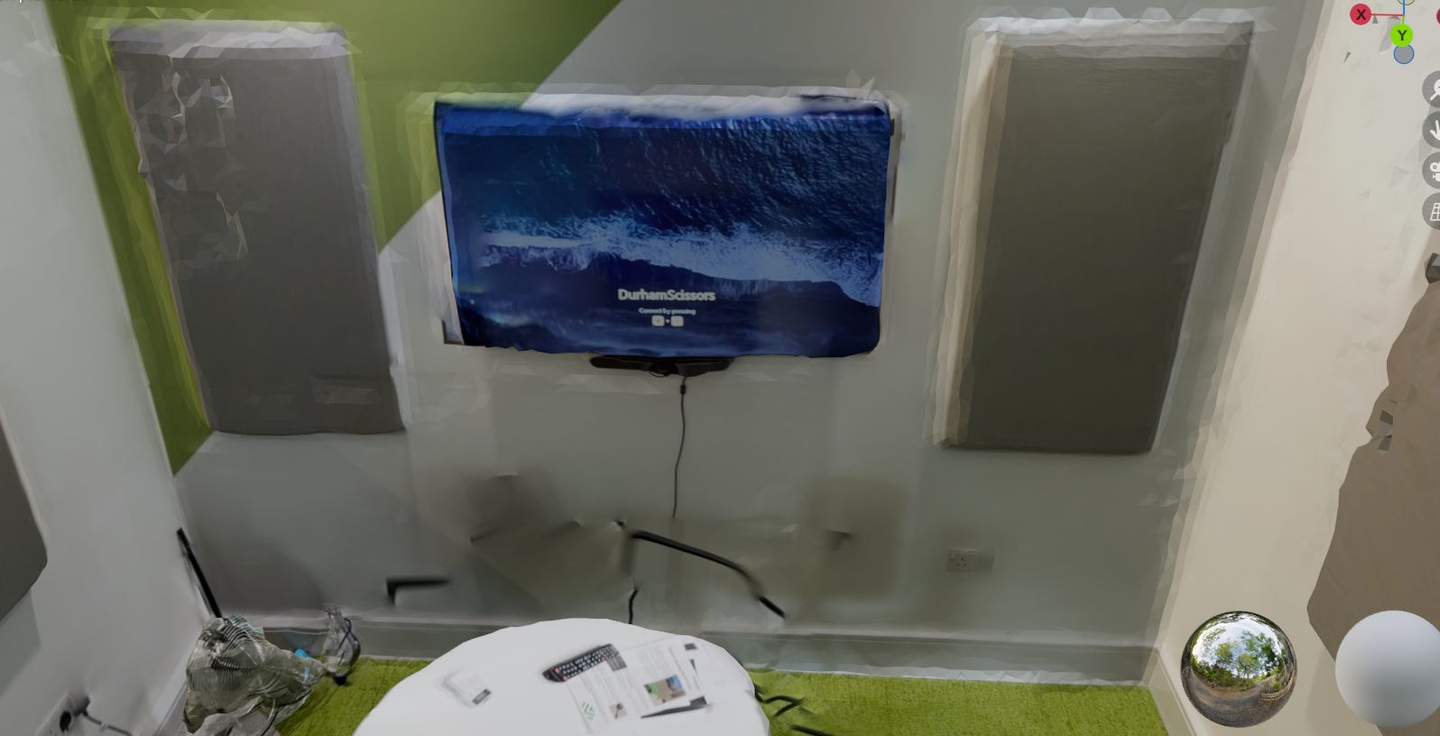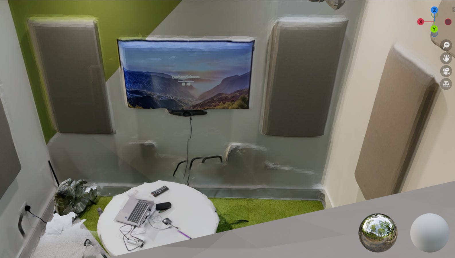 The second app I looked at is Dot3D, which supports both the RealSense Camera, through the use of the Windows app, as well as iPad. Both are free to use, but the iPad app requires a paid subscription if you want to export scans created using the app, which costs £49.99 a month and does not perform as well as the Realsense Camera, plus objects can often appear duplicated or distorted. While I found Dot3D was excellent for picking up details of an object that is smaller, which can then be easily exported into a mesh and then into a headset, the items within the scan aren’t interactive and require a lot of knowledge of editing software to move. The cable we have for our camera is quite short, which means having to carry your laptop around with you as you scan. In addition, often the error message “lacks enough depth” would appear, meaning that you have to realign your camera to a previous place you have scanned and go again, which can make it quite tedious.